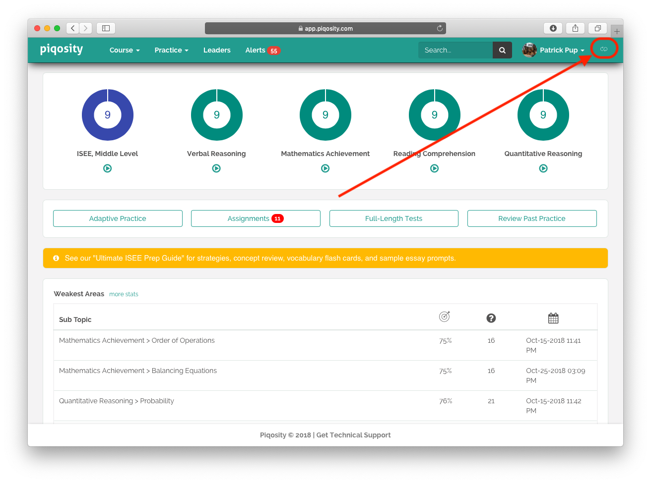 This feature is particularly helpful in order to see all of a student's past practice or troubleshoot account issues.